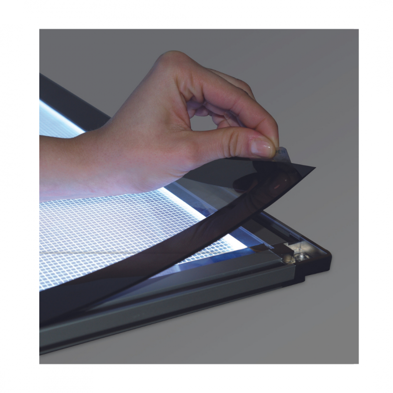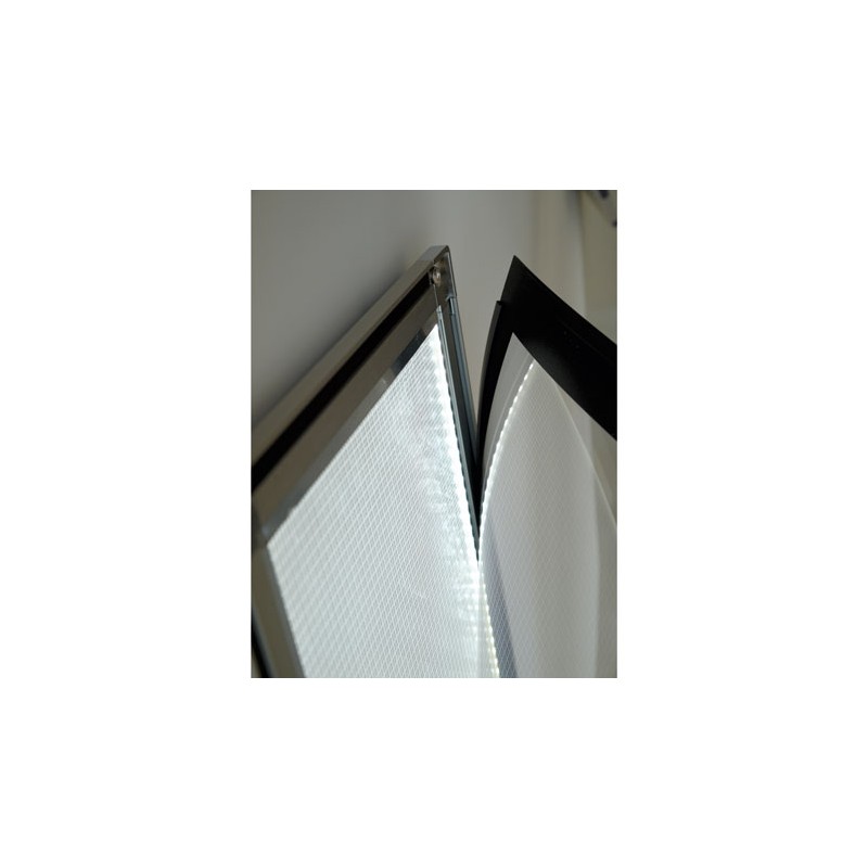 Cadre composé d'un panneau en acrylique de 8 mm d'épaisseur, de LED et d'une protection flexible en polycarbonate transparent.