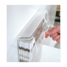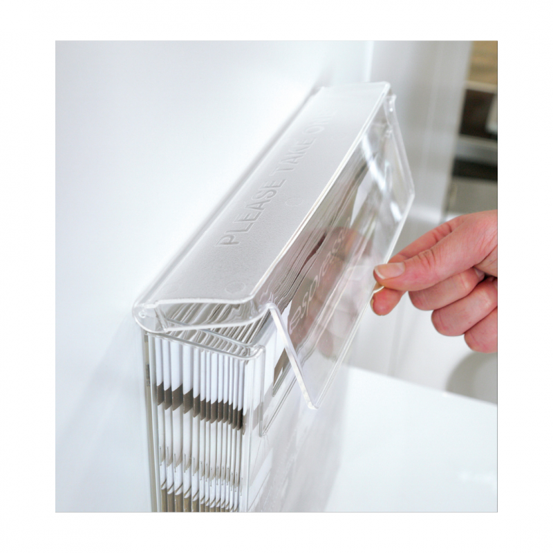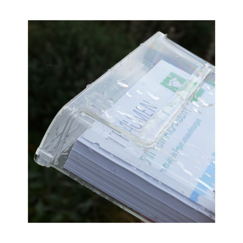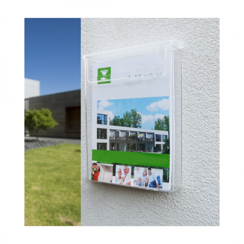 Porte-brochures est fabriqué en polycarbonate transparent.