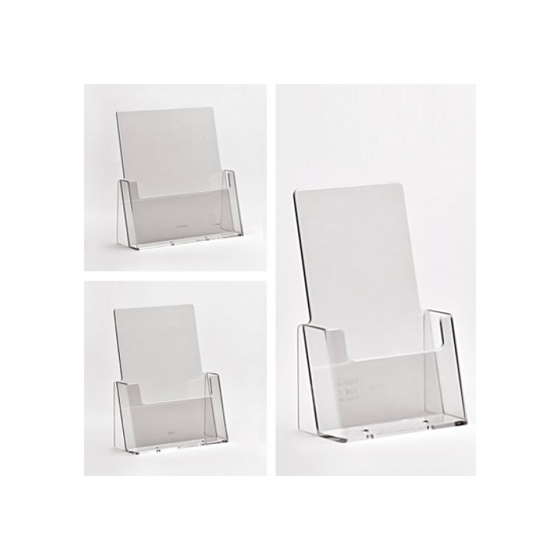 Porte-dépliants à compârtiment unique en plexi transparent.