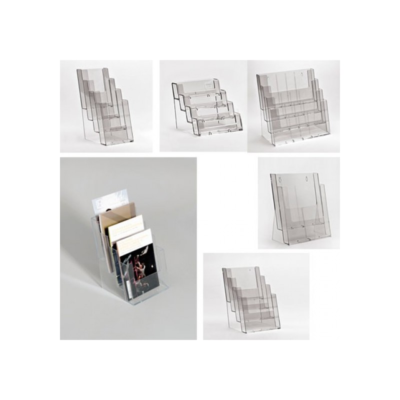 Porte-brochures à plusieurs compartiments en plexi transparent.
