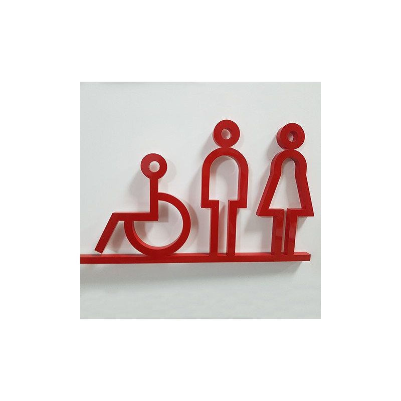Nombreuses possibilités de conception: petite plaque (métal, dibond, plexiglas, PVC, bois, carton), gravée ou imprimée, adhésif mural grand format de différentes couleurs ou design découpé directement dans la matière.