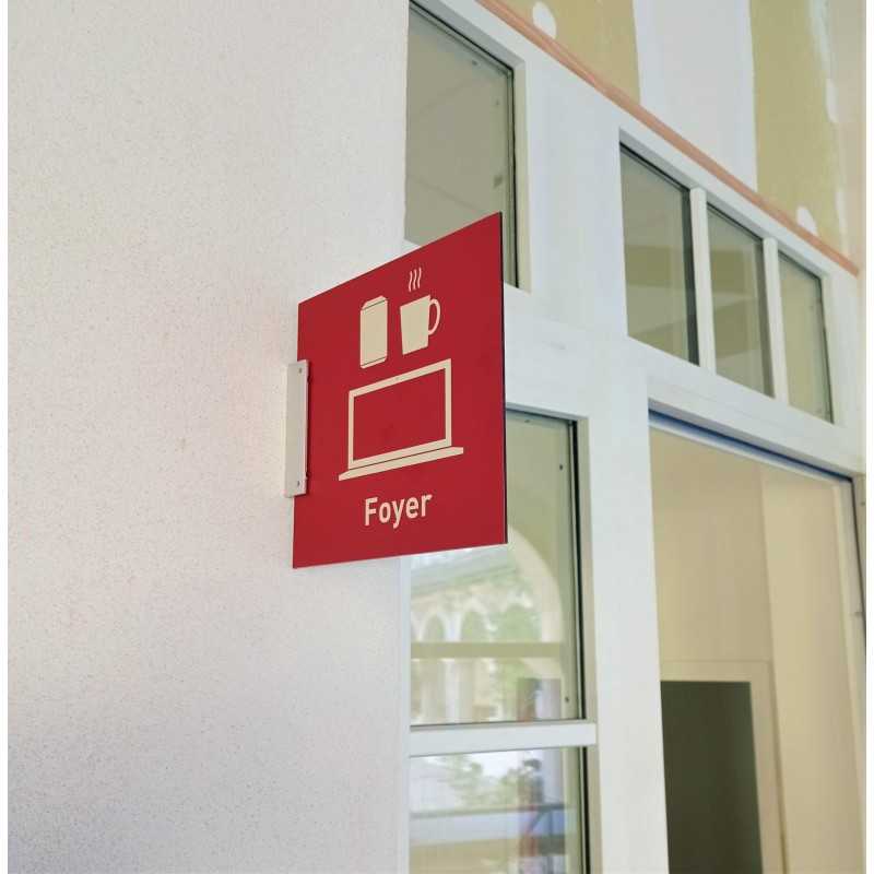 Petits formats de plaques de porte à fixer sur le mur à côté de la porte ou directement sur la porte. Conception sur-mesure en fonction de l'identité de la marque et du design du lieu.