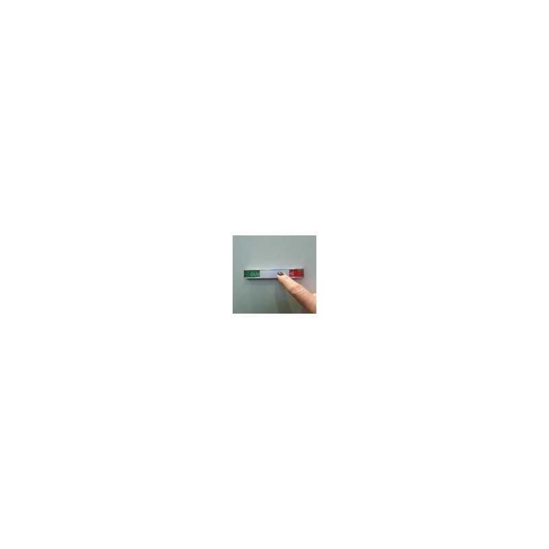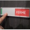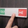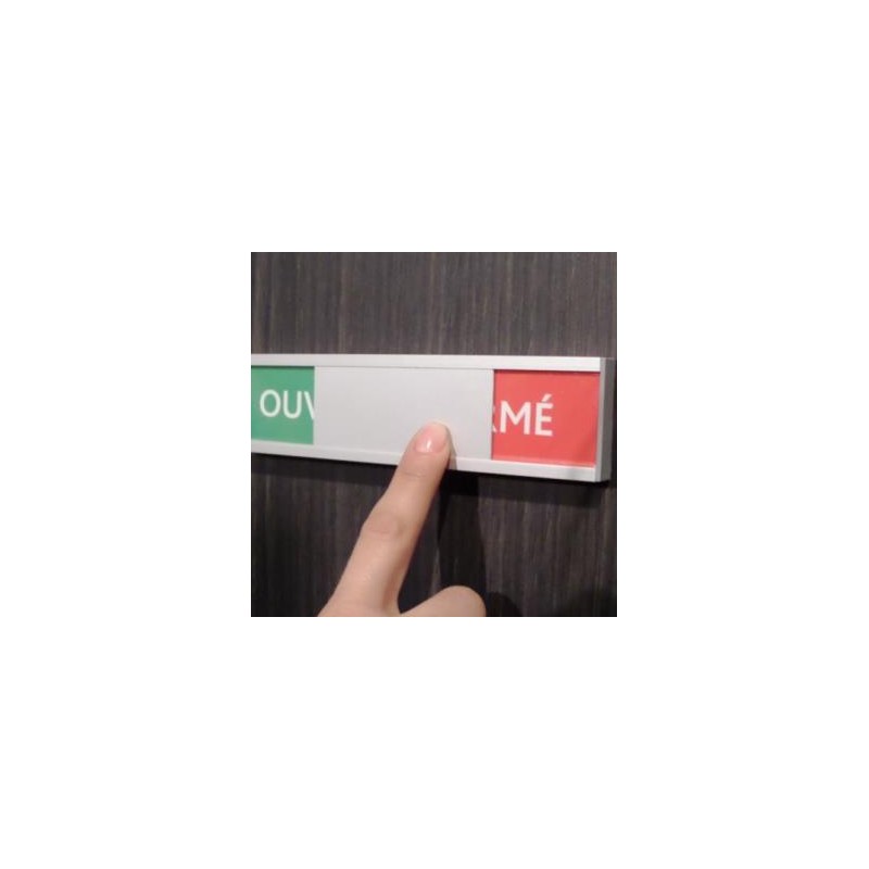 Plaque de porte en aluminium naturel avec systeme coulissant laissant apparaître un message "ouvert" ou "fermé"