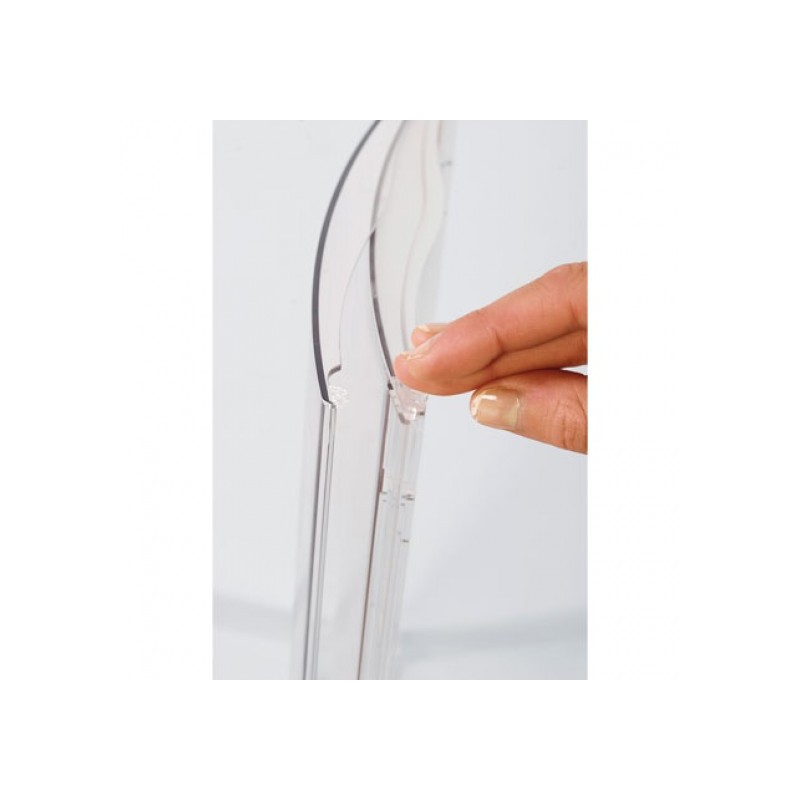 Plaque de porte galbée en polycarbonate transparent.