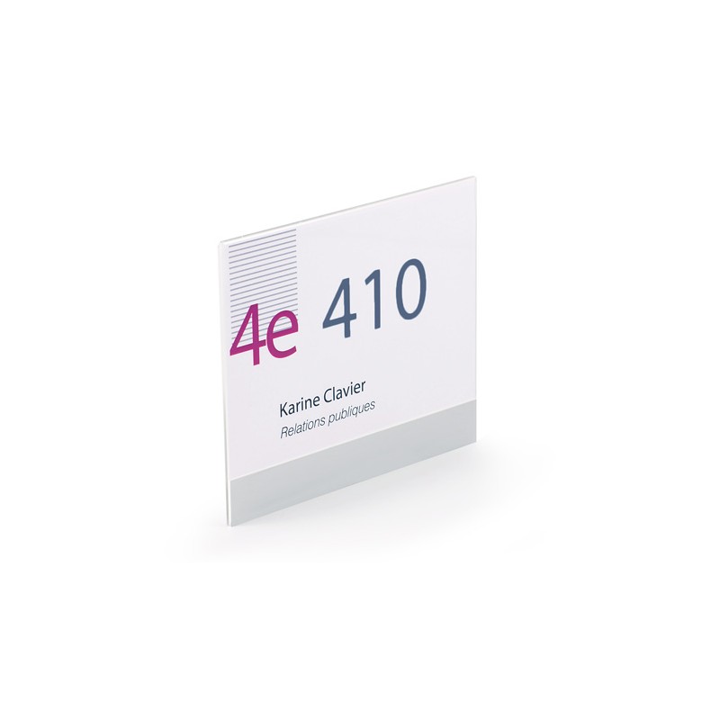 Plaque de porte en plexi transparent et embase en aluminium anodisé