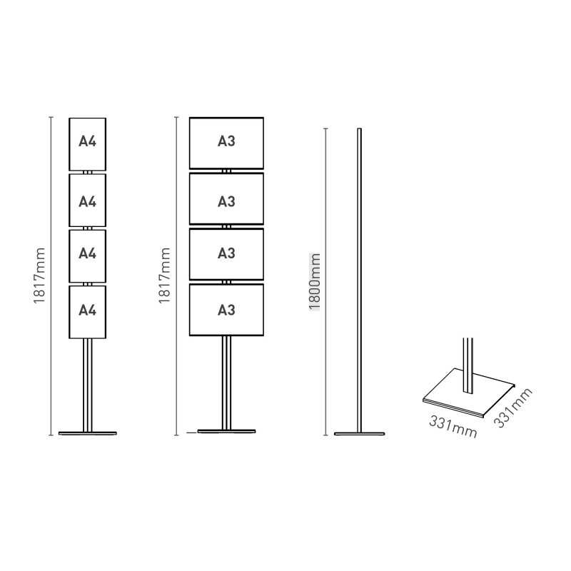 Totem sur pied avec cadres A4 ou A3 à combiner à l'orizontal ou à la vertical.